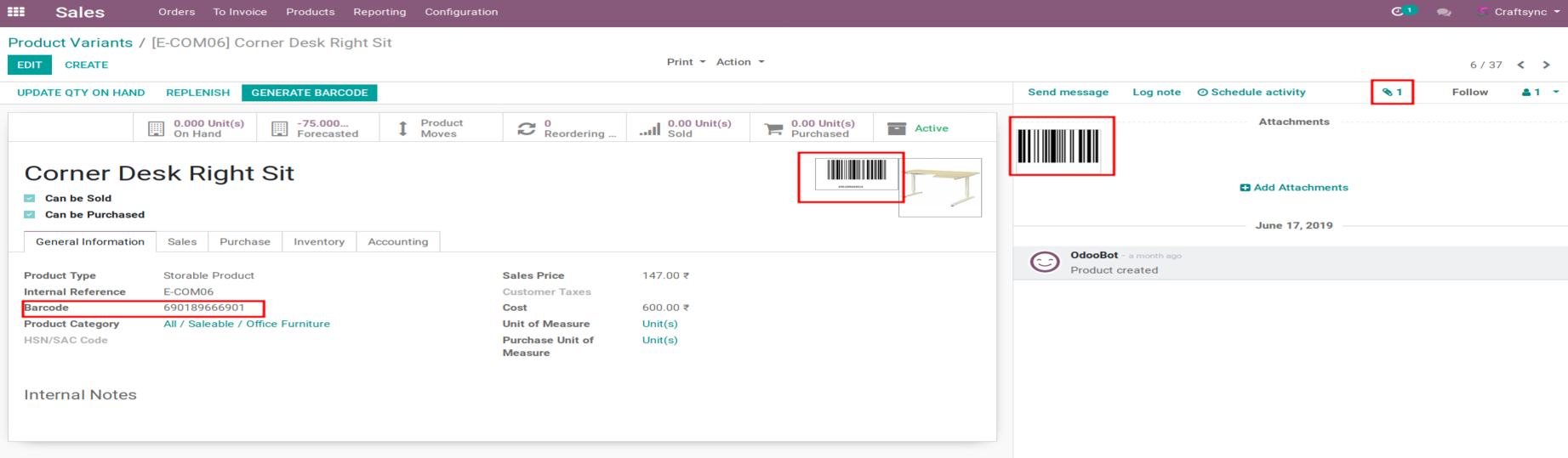 - This application provides facility to create EAN13 Random Barcode generate of product.