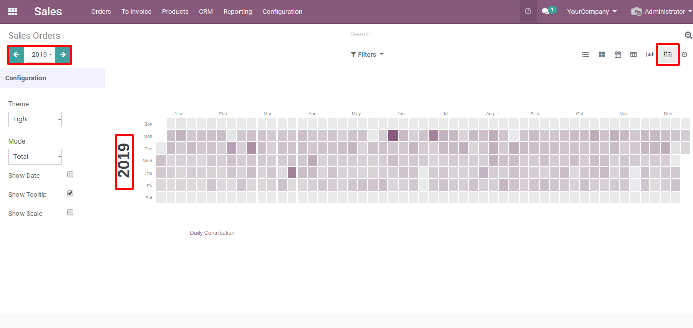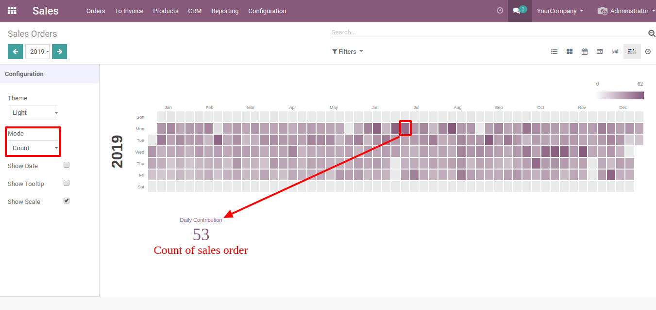 - User can easily configure show date, show tooltip, and show scale to analyse calendar chart.
