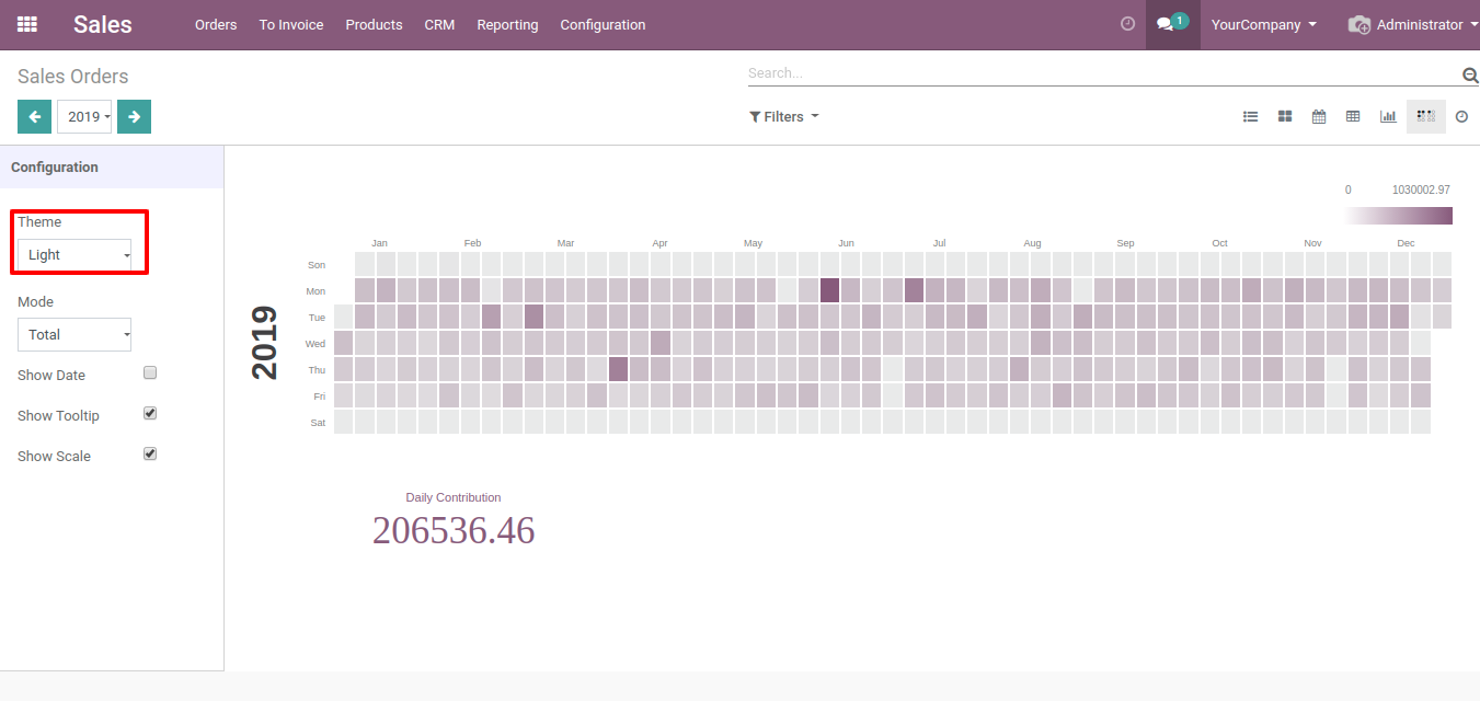 - User can easily configure show date, show tooltip, and show scale to analyse calendar chart.