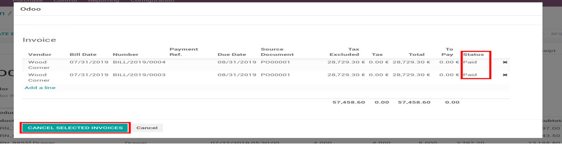 User can also cancel multiple invoice from Cancel Invoice button and User can cancel invoice of purchase order even if it paid.