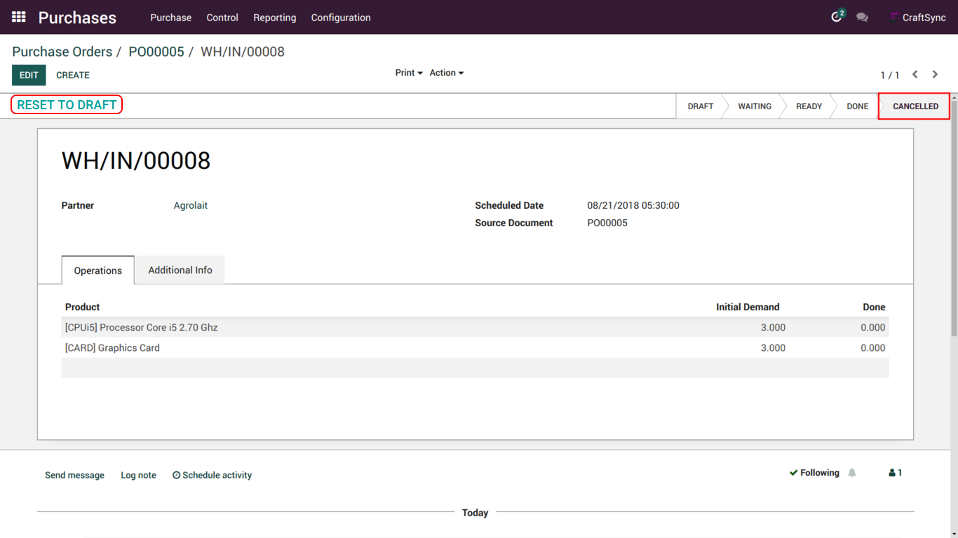 Cancel Manufacturing & Delivery / Incoming Shipments