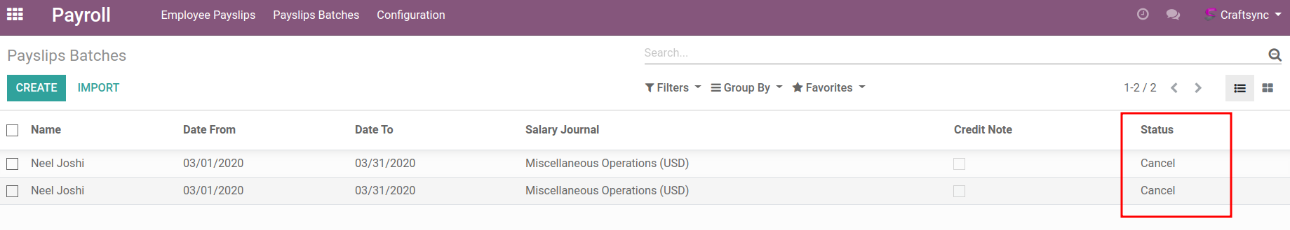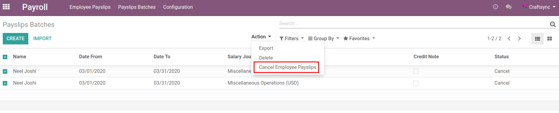 - This application is allow user to cancel multiple batch payslips on a single click