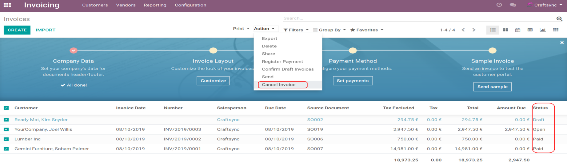 Following image shows in list view of Invoices User can select more than one invoice for cancellation: