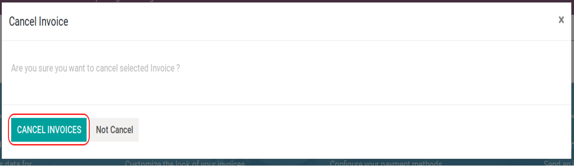 Below image will give warning for sure to cancel selected invoices: