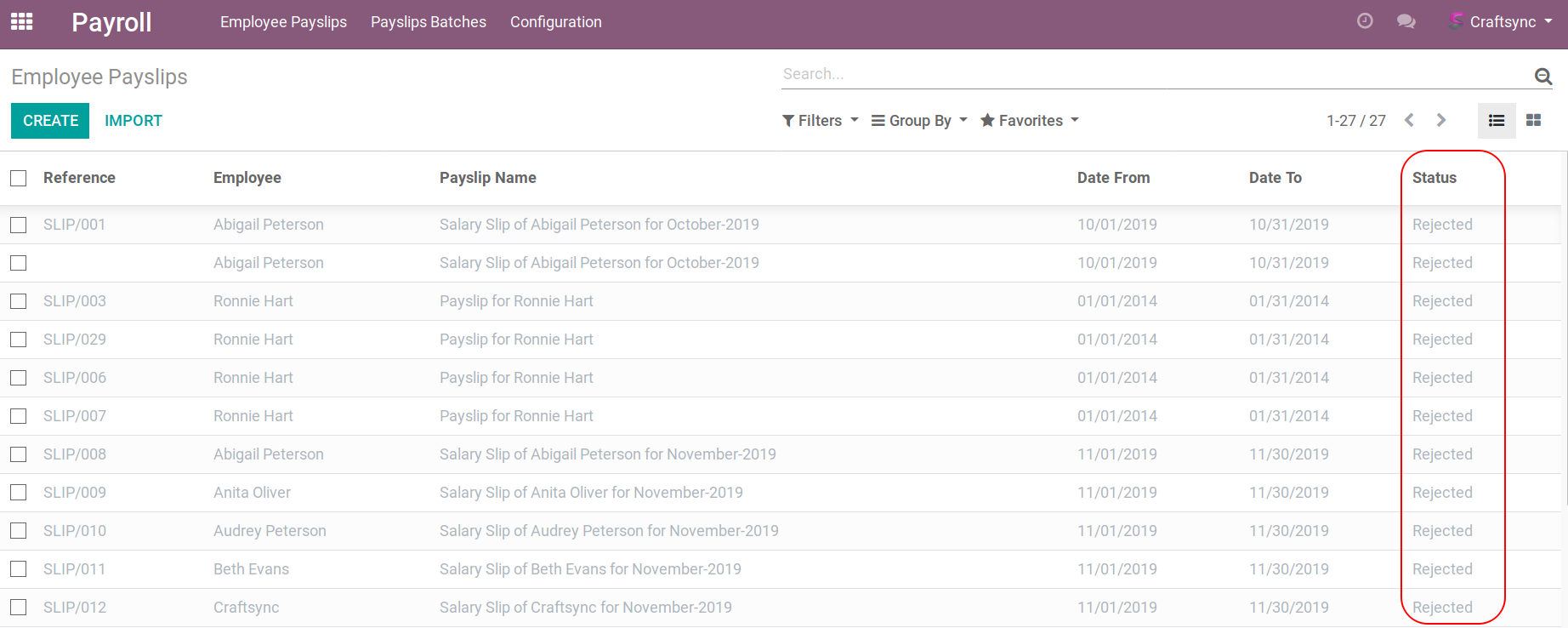 Following image shows in list view of Employee Payslips User can select more than one order for cancellation: