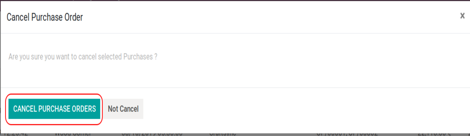 Following image shows in list view of purchase order User can select more than one order for cancellation: