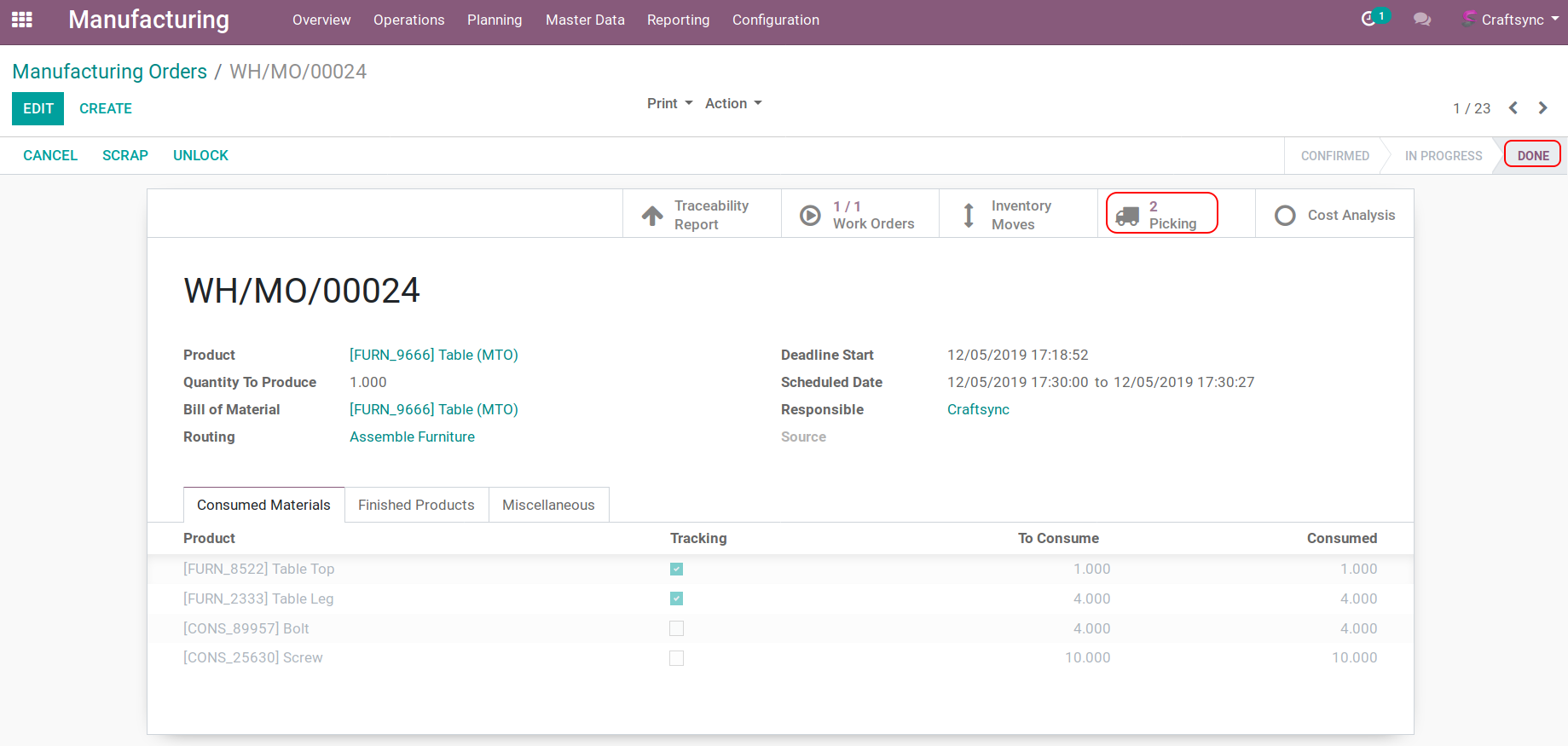 This application helps to automate process of Cancel Manufacturing Order with picking.