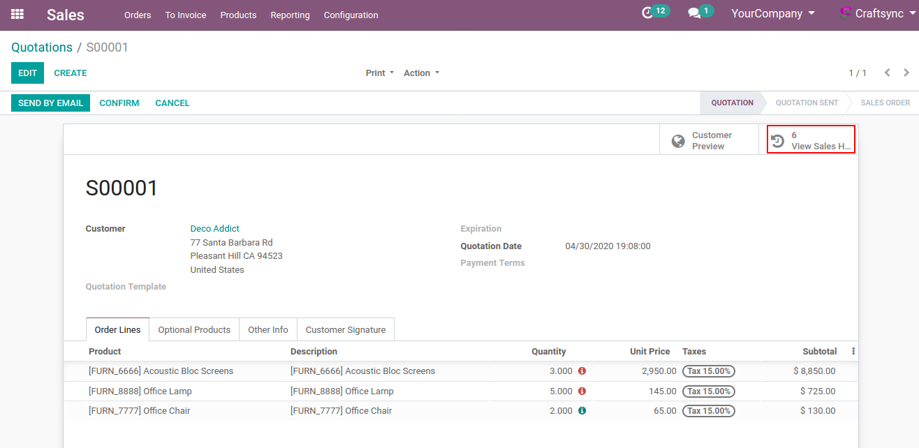 View Sales History From Sale Order