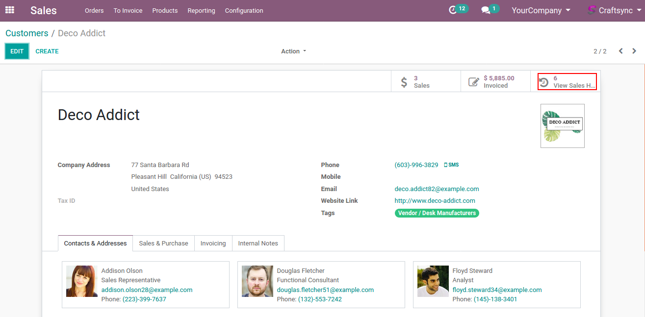 - Sales history from customer view.