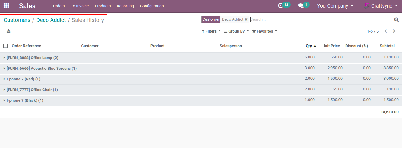 View Sales History From Customer