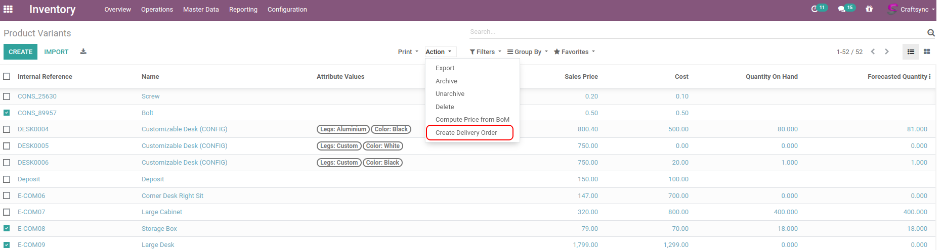When user click on create delivery order action below popup will display. User can select Partner, operation type & locations of the order .