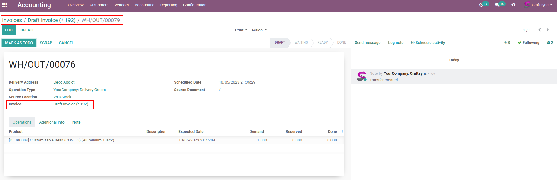 Create Delivery from invoice