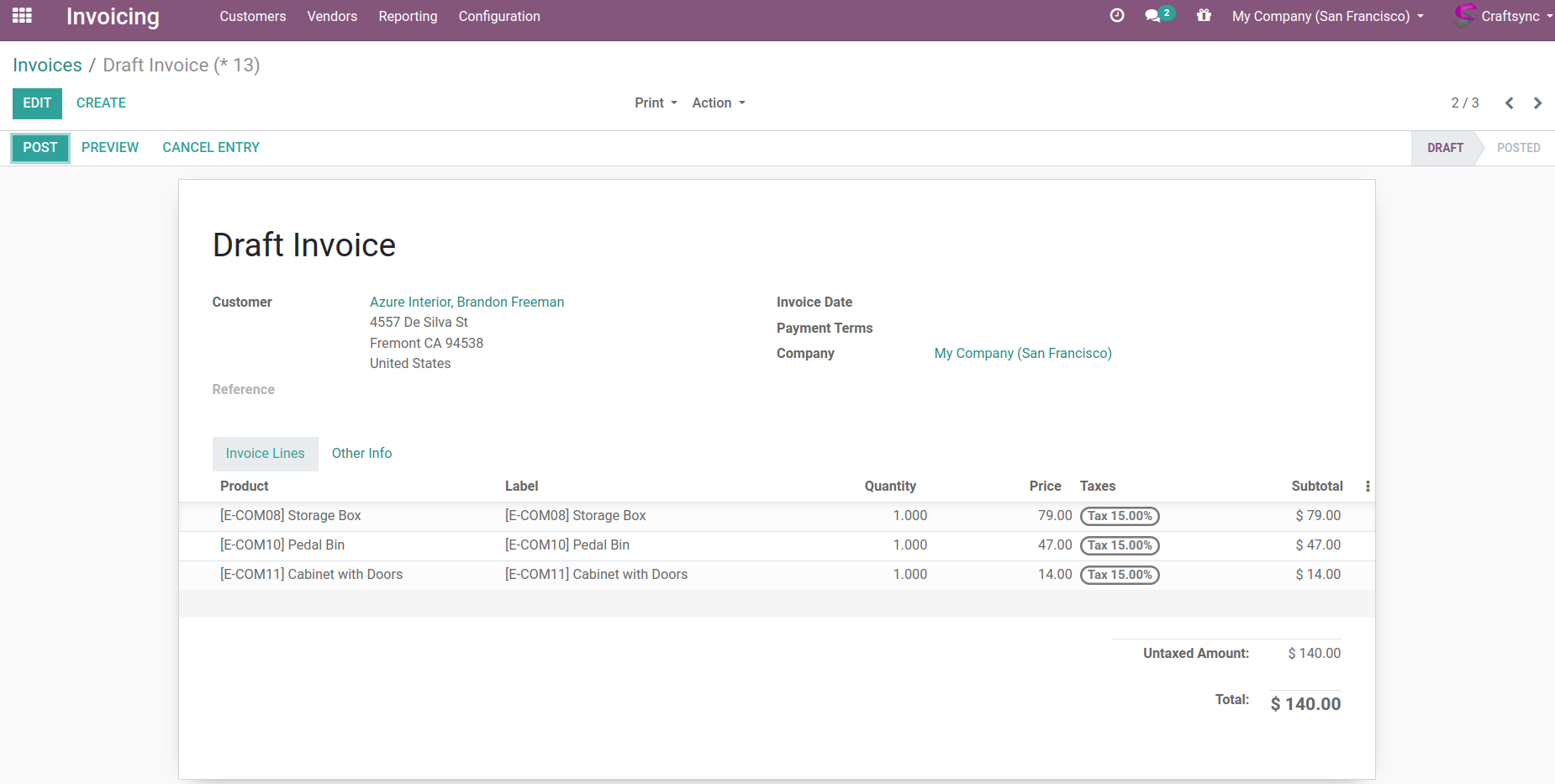 Below is a second example of a recently created invoice based on the user's selected configuration.