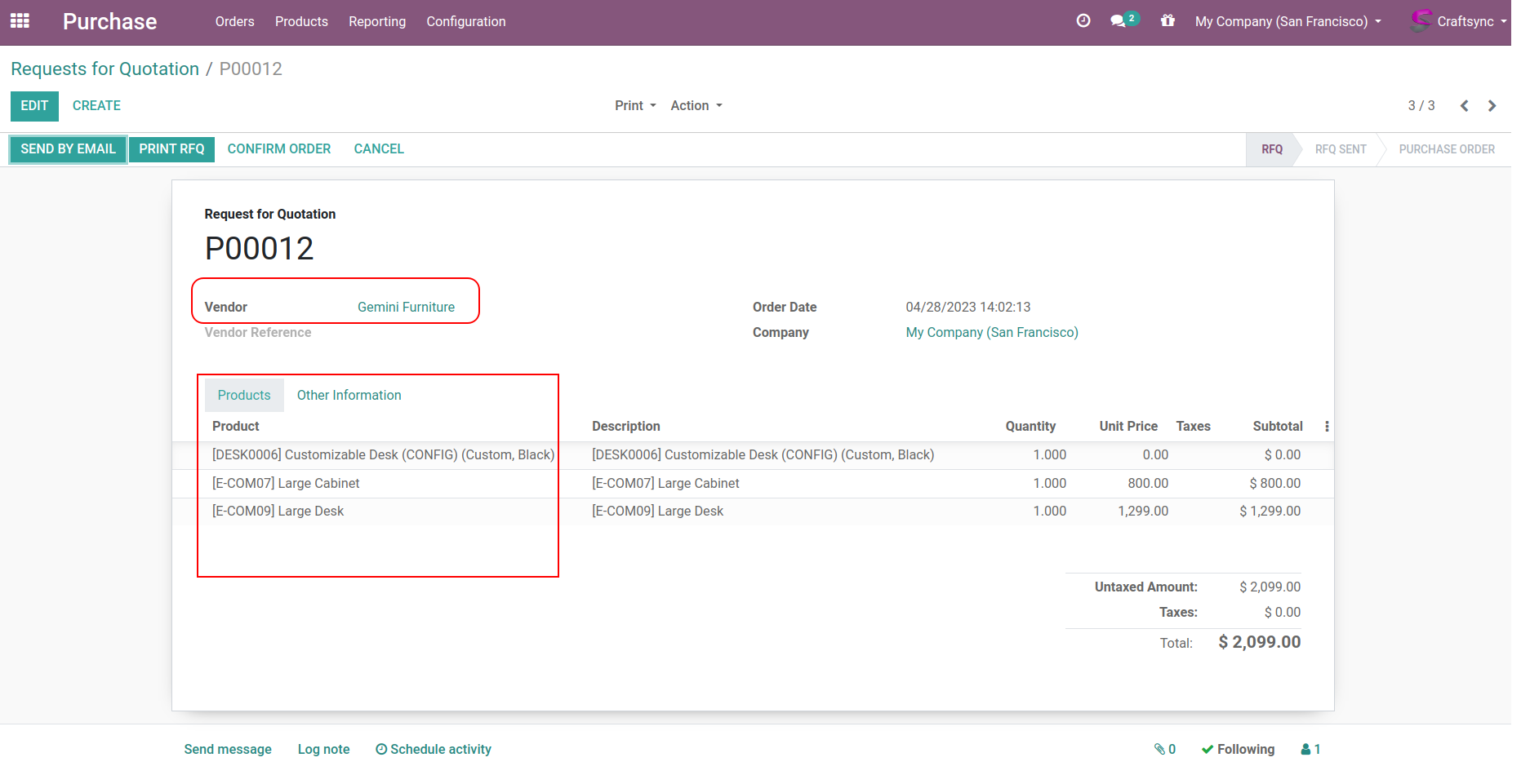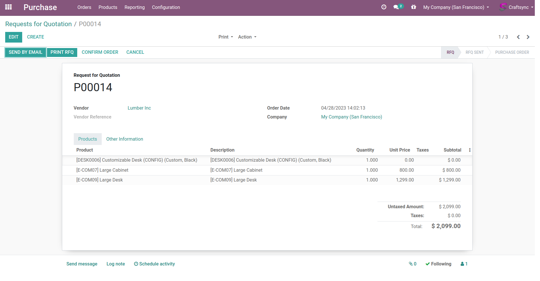 Below is a second example of a recently created purchase orders based on the user's selected configuration.