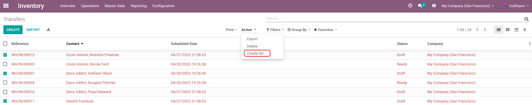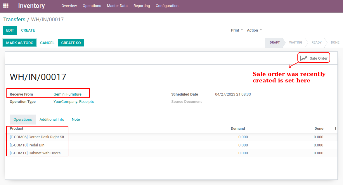 Picking & Incoming shipment having create SO action.