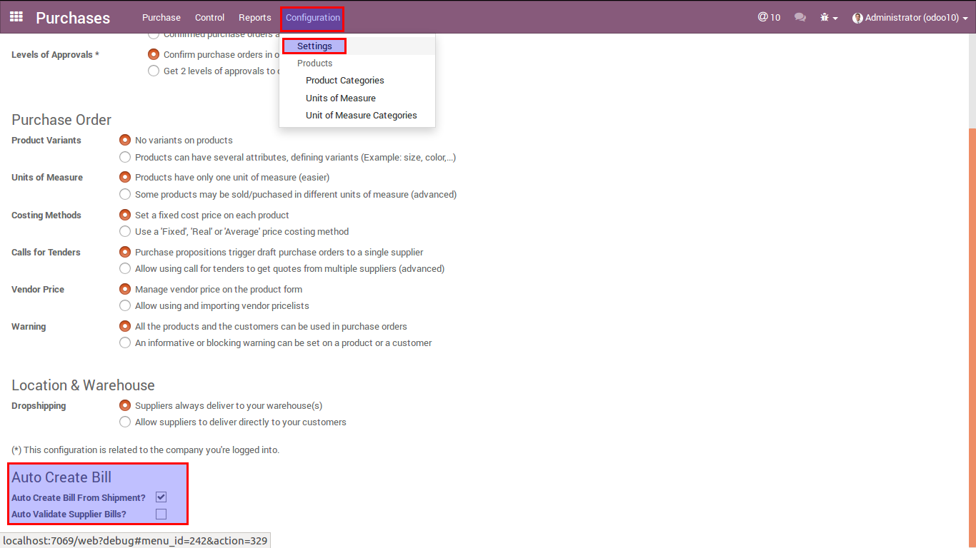 This Application helps to enable auto create bill from incoming shipment based on configuration.