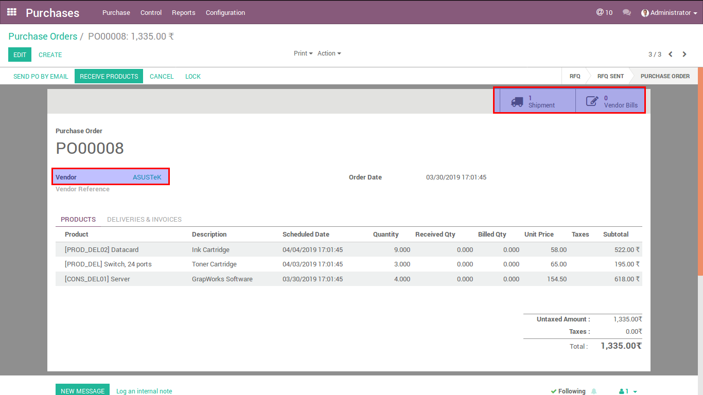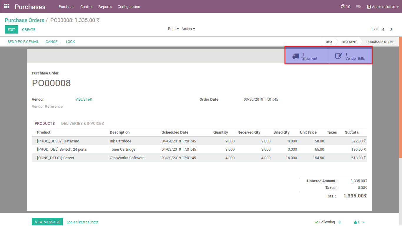 Below image is a purchase order without Vendor Bill.