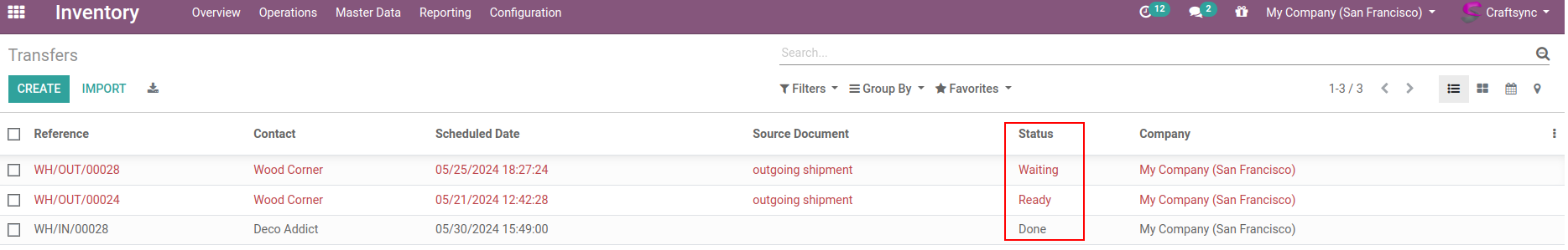 Here are Delivery orders list view, having Three DO are in Diffrent state.