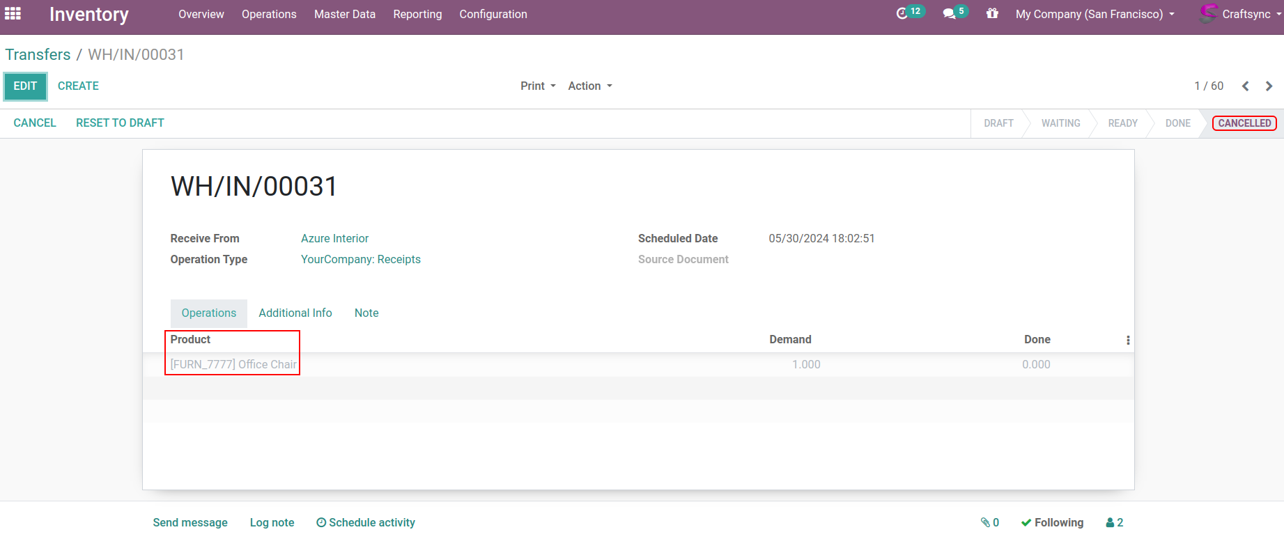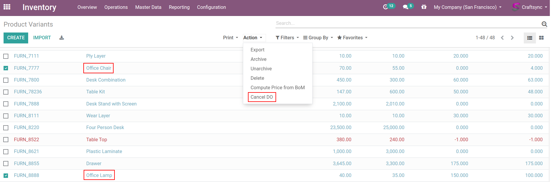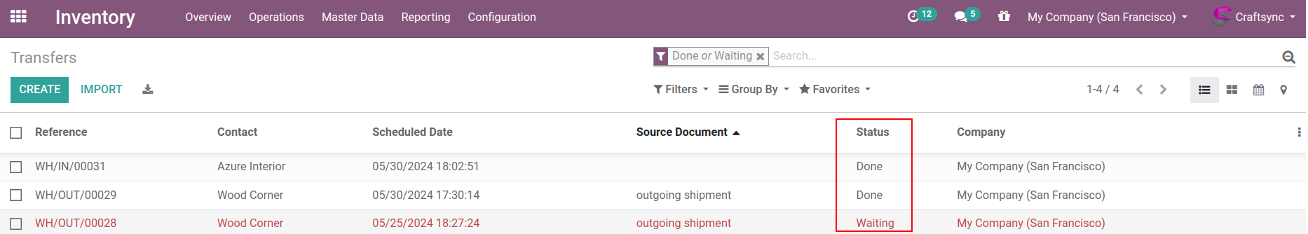 Here are Delivery orders list view, whose having Office Lamp and Office Chair as product. DO are in Done & Waiting state.
