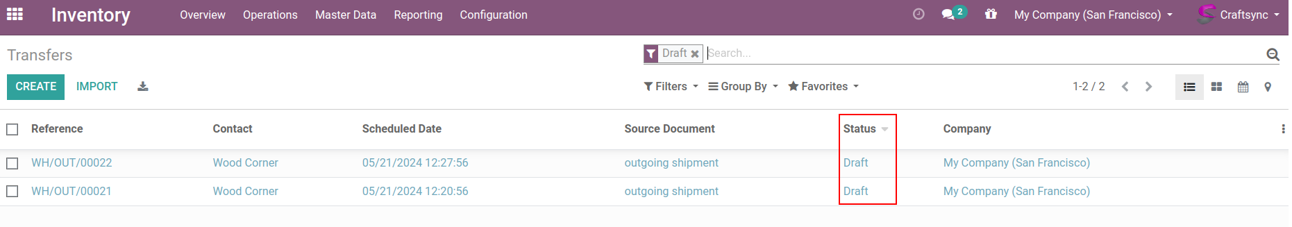 Here are Delivery orders list view, having Two DO are in Draft state of partner name wood corner.