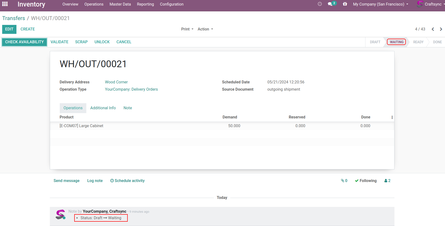 Detail view of Delivery order, after clicking confirm DO button.