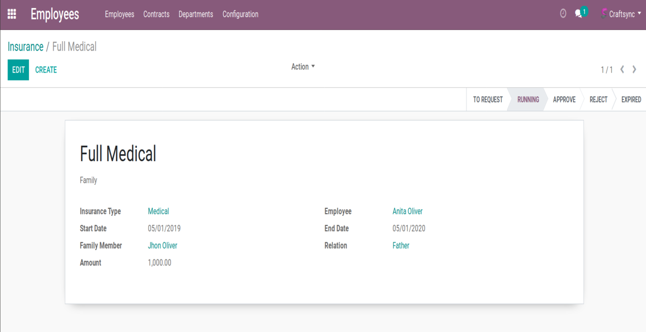 Above Image is display view of Insurance of Employee and his/her family's Employee.