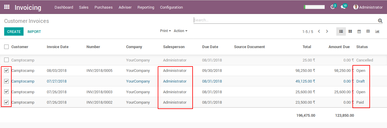 - Select various invoices that belongs to same partner and same type.