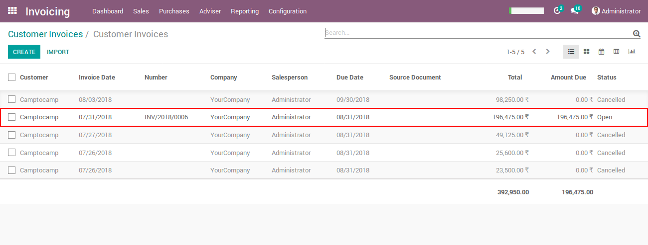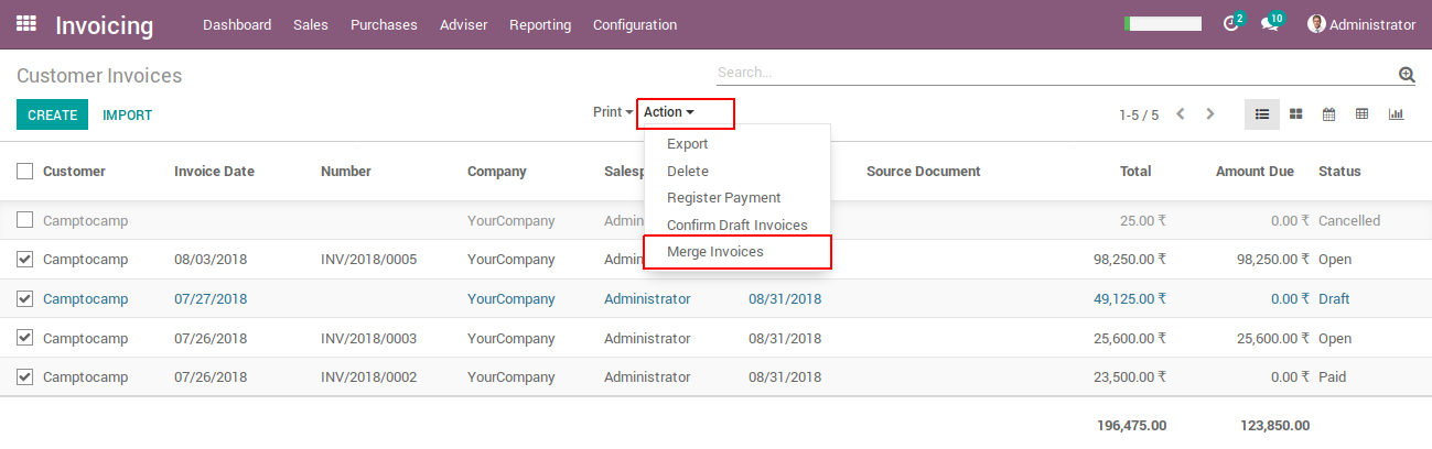 - This application provides facility to merge different states of invoices even with registered payment.