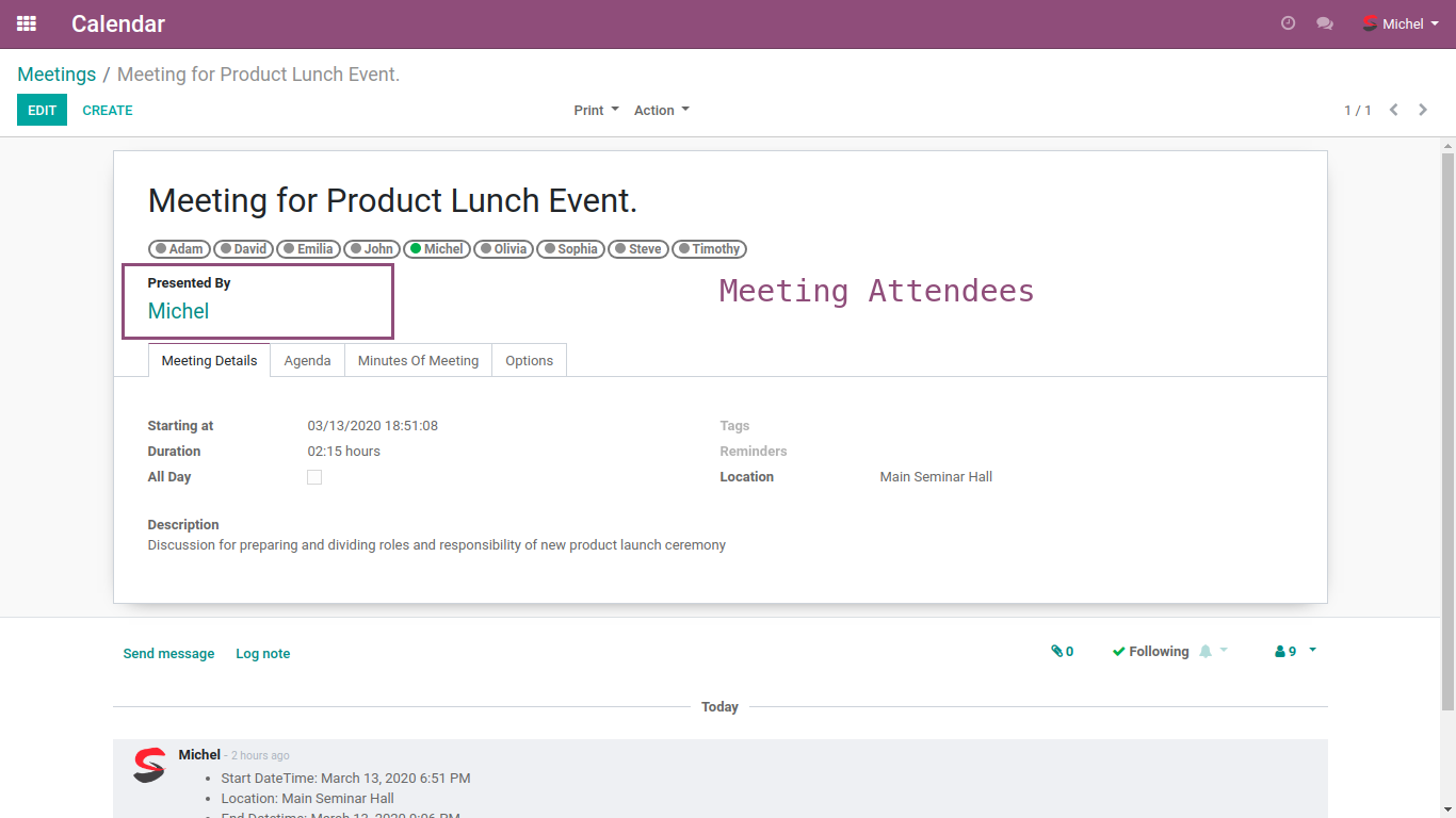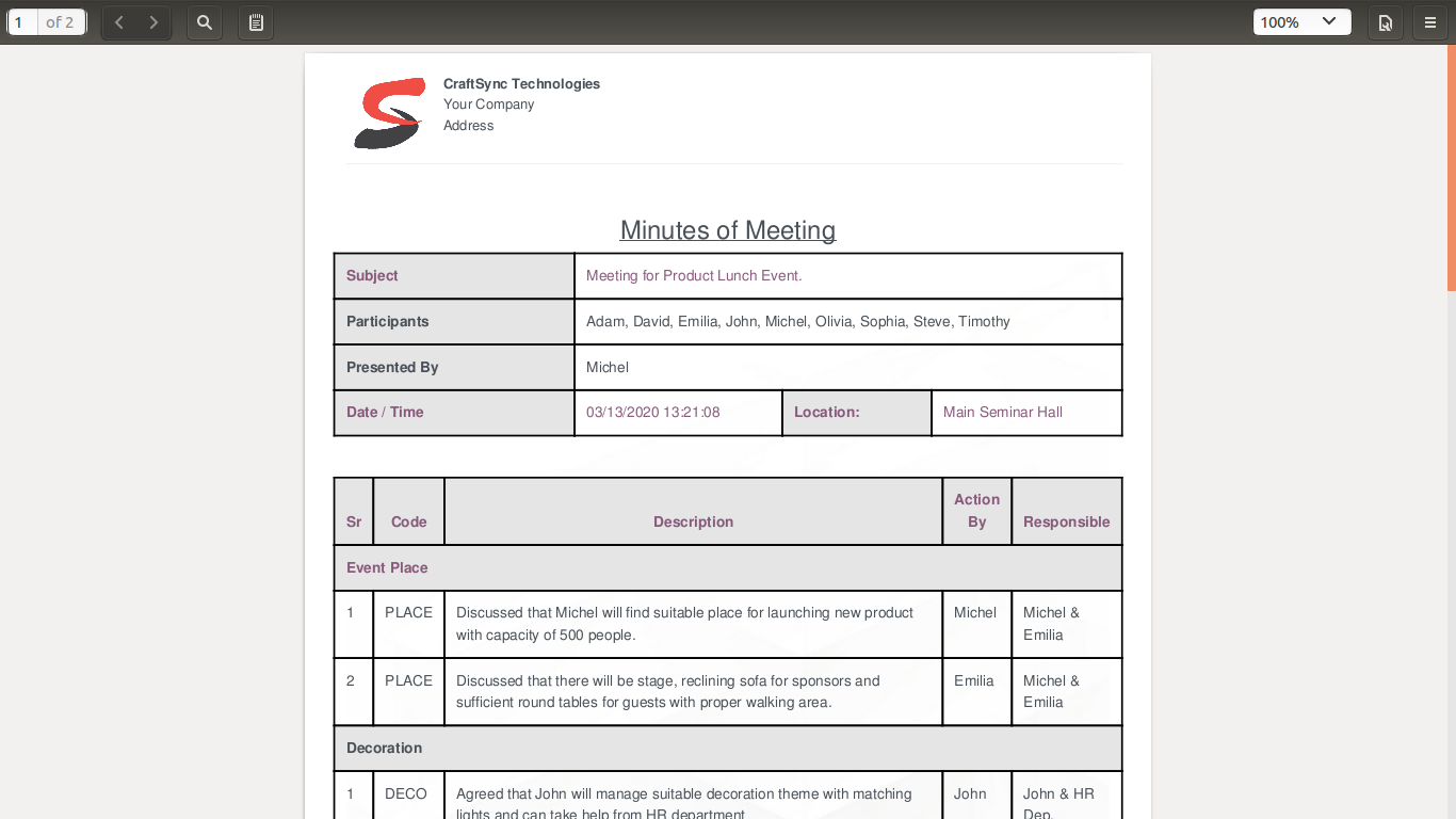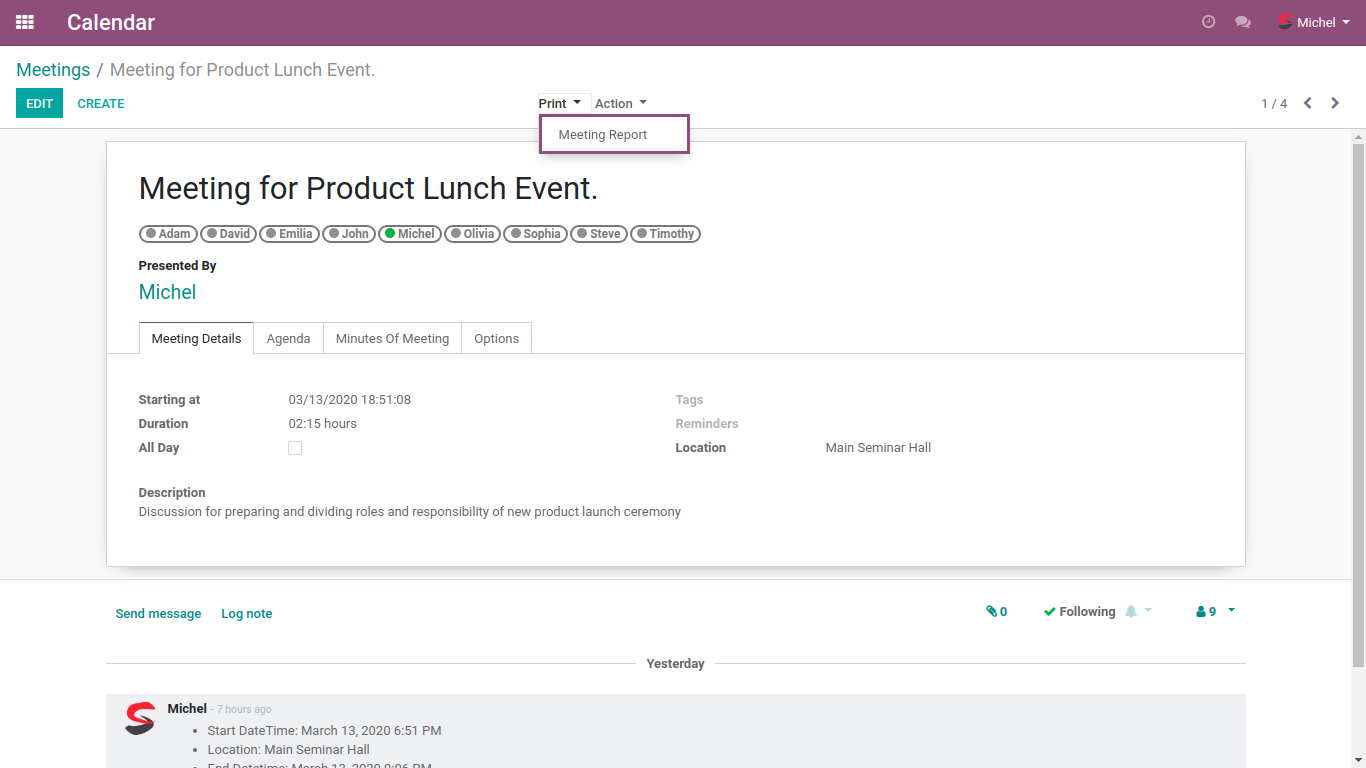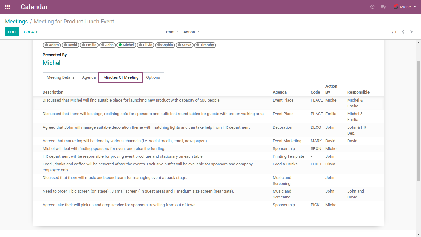 This module will allow you to take note of key points dicusses during meeting and print the report with all the details.