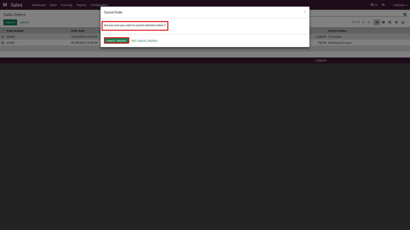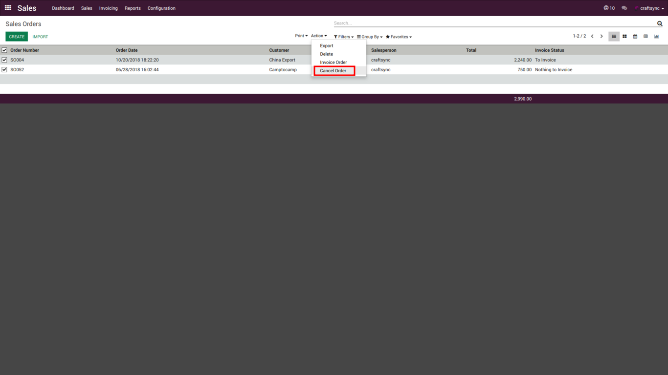 Following image shows in list view of sale order User can select more than one order for cancellation: