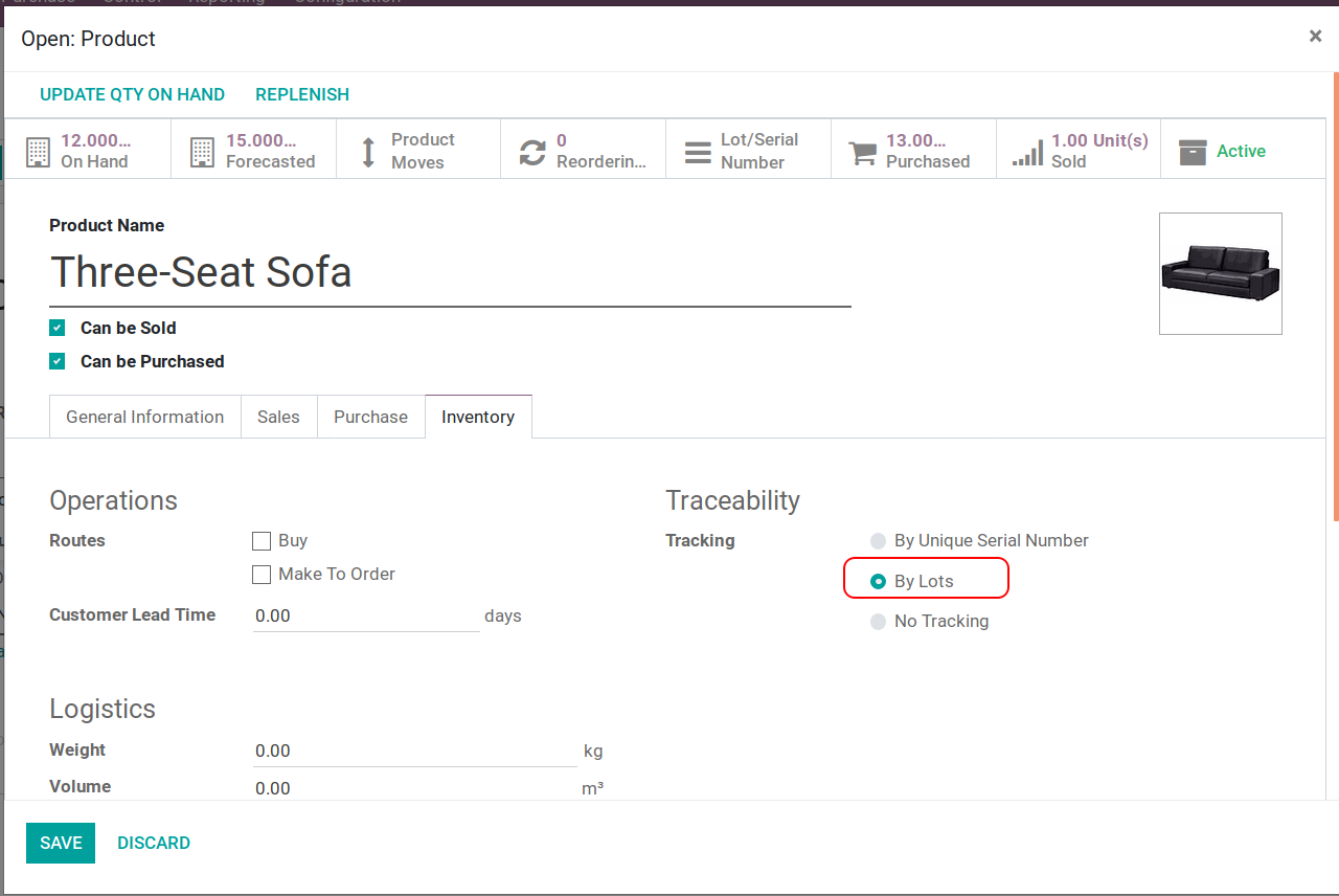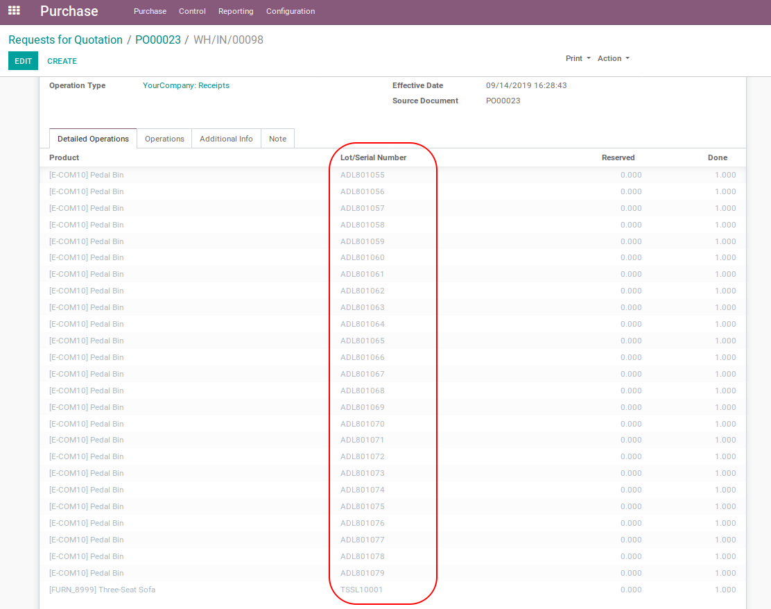 Incoming Shipment(Delivery Order) with serial number and lot in above image.