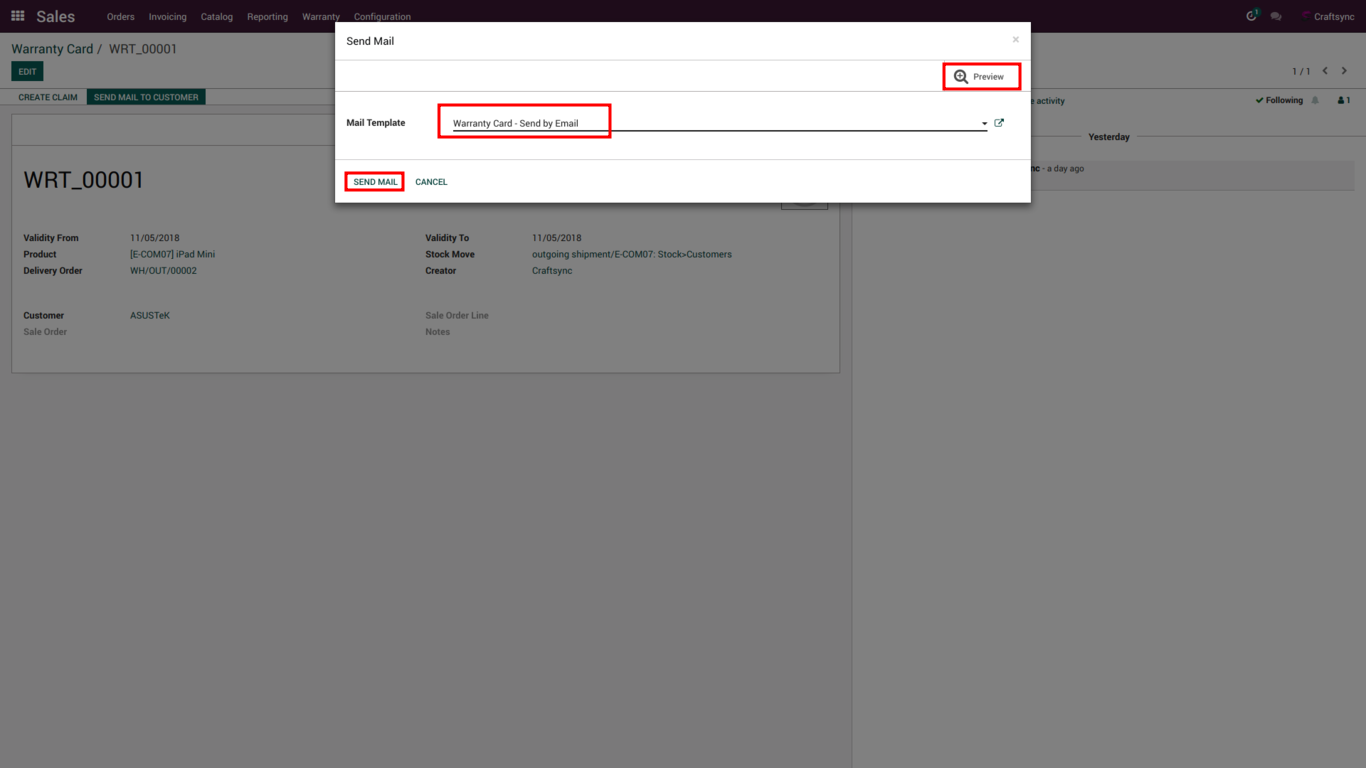 Above Image is for send mail to partner Image user can send from warranty card and claim as well and user can also preview of that mail here.