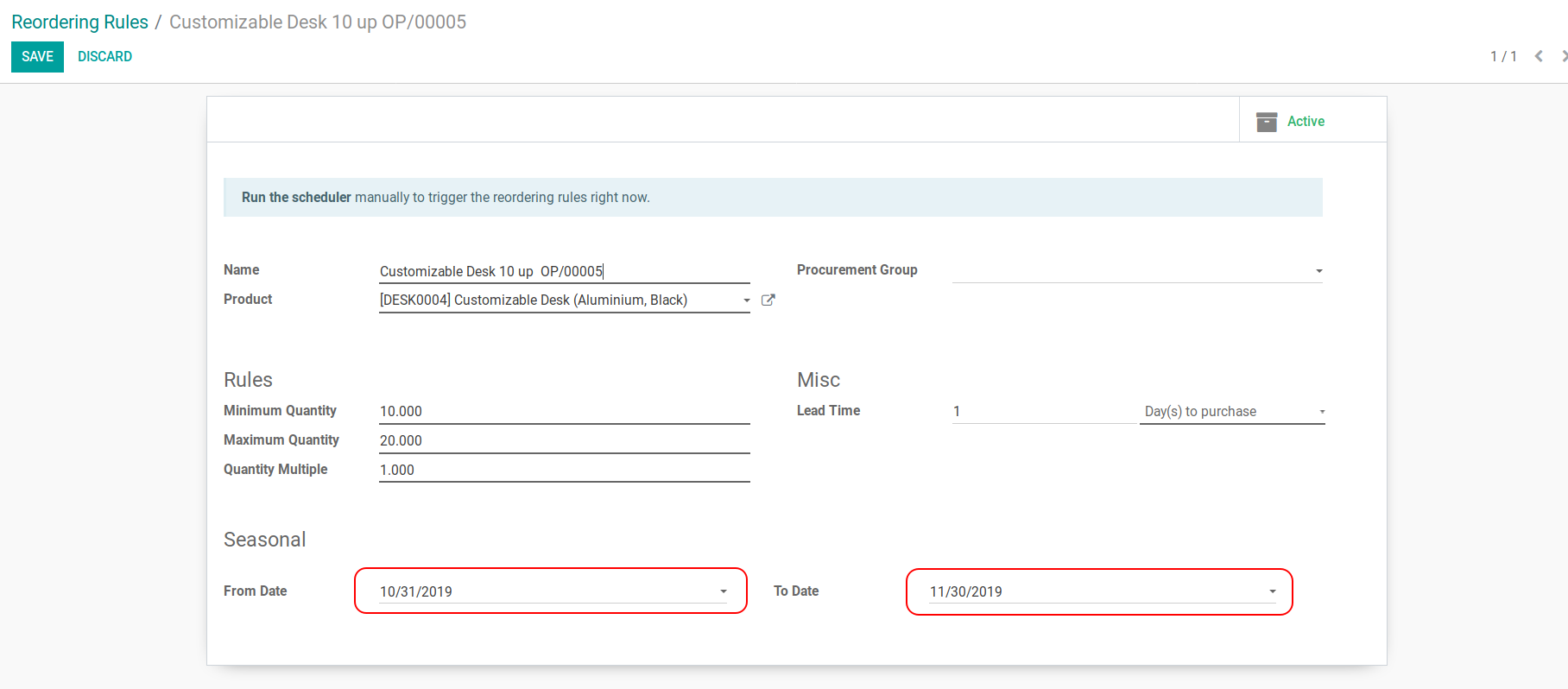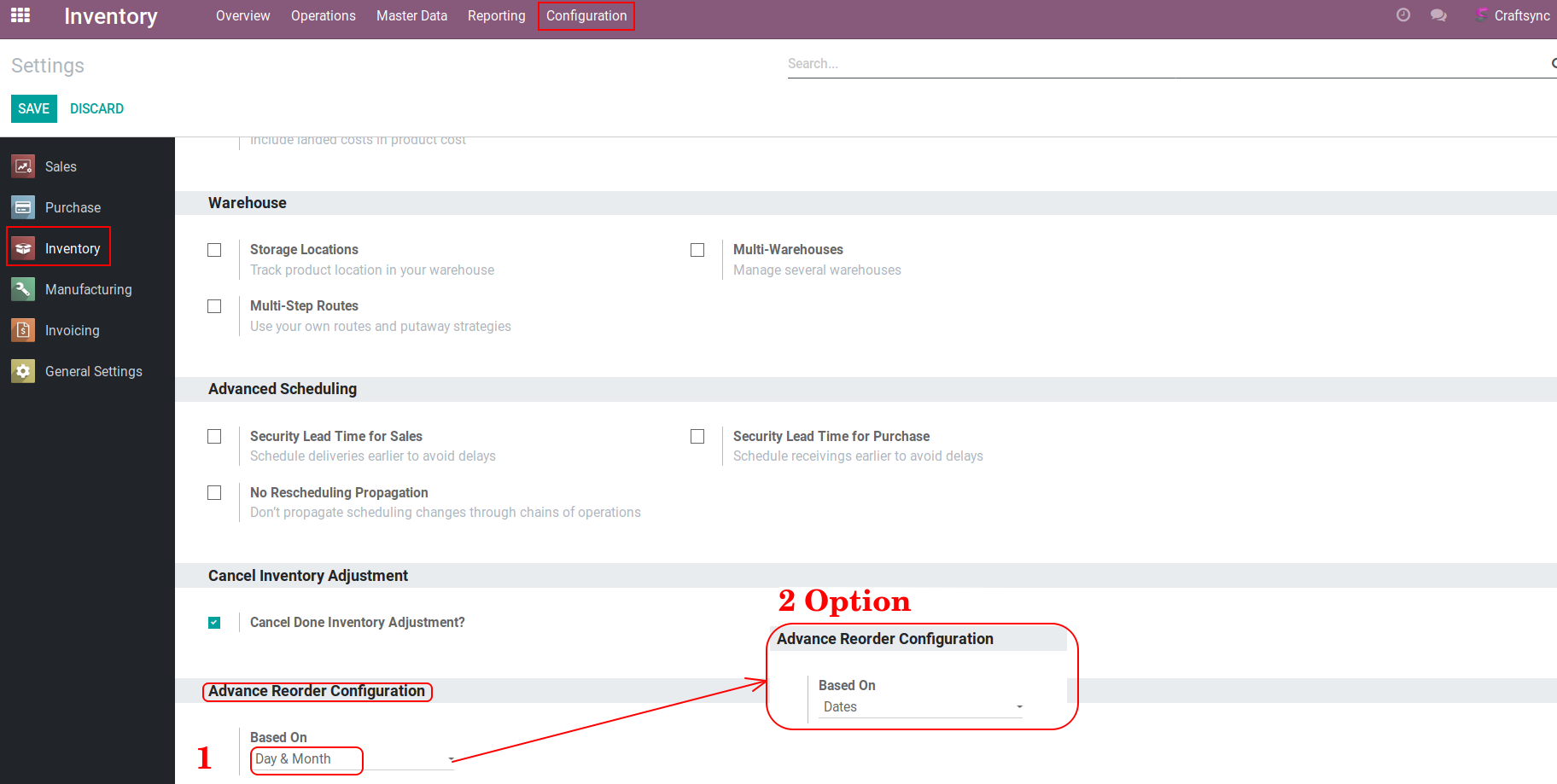 After installation of this application above configuration will appear in Inventory Configuration for advance reorder configuration: