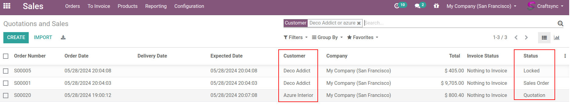 Here are Sale orders list view, having Three SO are in Diffrent state.