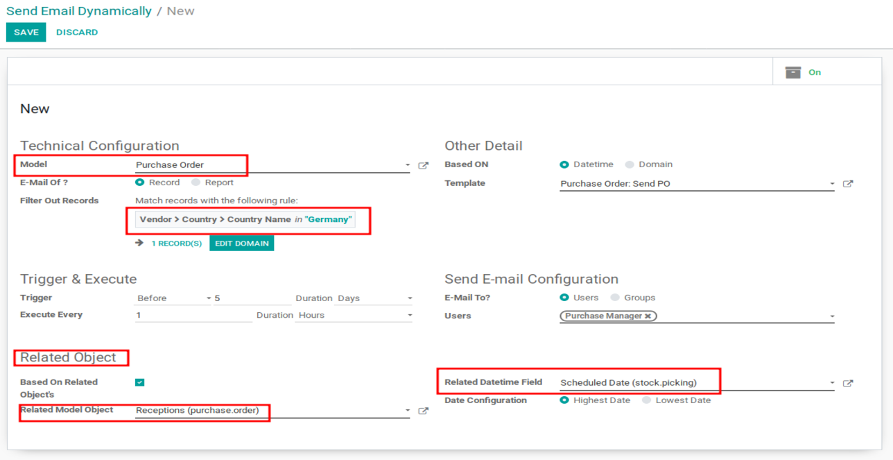 Above Image Is for Example of Related Object of Purchase Order Related with Reception(Picking). Related Model Object is relation Model Object of selected model like purchase is related with Incoming Shipments(One2many and Many2many and Many2one Fields of Selected Model)