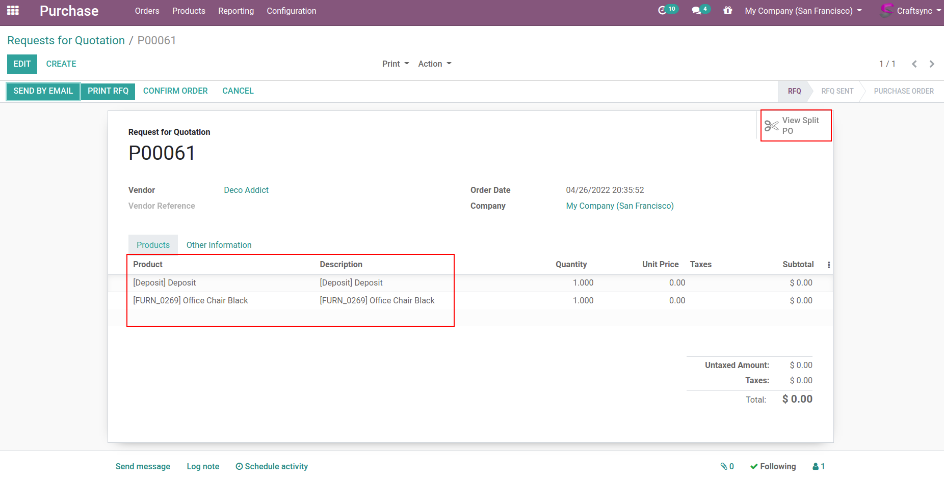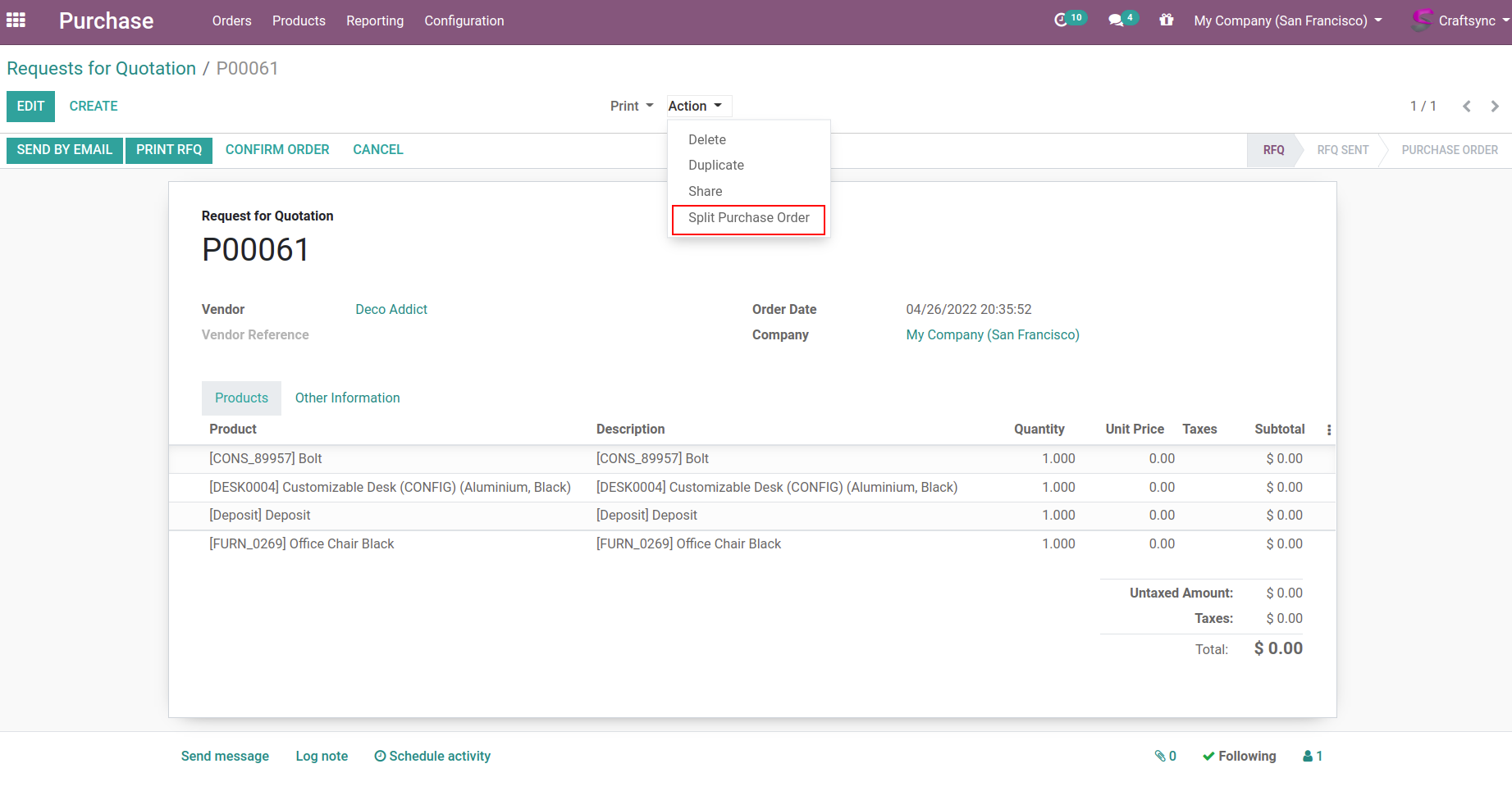 After installation of this application below Split Purchase Order action will be visible in PO.