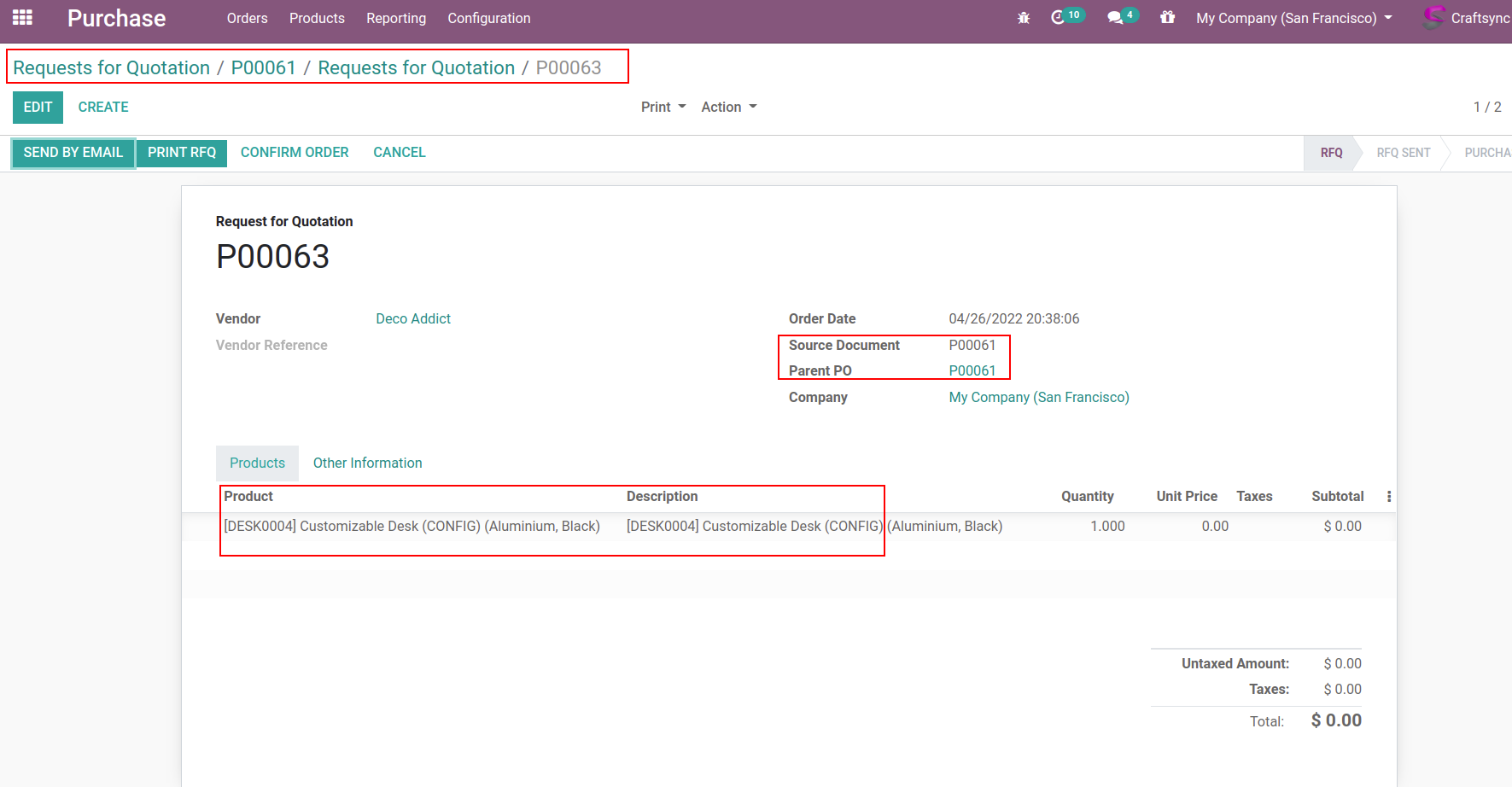 - This application Only work perfectly for Draft or RFQ Stage Order