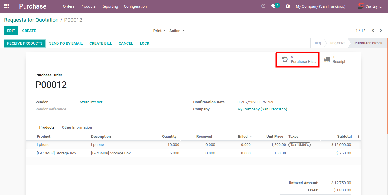 - User can check purchase history of related product from purchase order view.